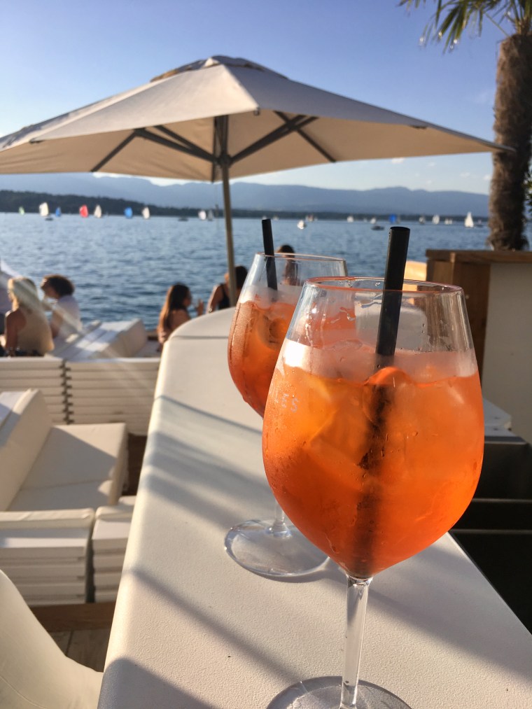Les Voiles was were we spent 4th of July evening as well as another lovely sunny late afternoon on our last day to enjoy the sunset.  If you like beautiful views, music, people watching, drinks and food then Les Voiles is the place to be.  Its a seasonal bar/restaurant so don’t expect it to be open during the winter. The location is in the middle of this outdoor park/swim club and rec center….many families are here during the day enjoying the warm weather and lake activities.  Later the parents head to Les Voiles next door to play! Head to Les Voiles if you find yourself in Geneva in the summer time….you won’t be disappointed!