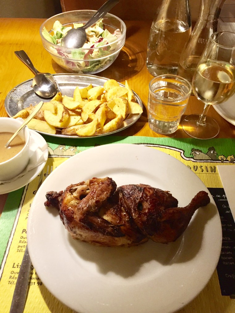 We had discovered Chez ma Cousine on many travel/food blogs and decided to check it out for lunch in Old Town.  A fast/casual sit-down restaurant known for their chicken and favorable prices.  Our order – the traditional 1/2 chicken with salad and fries.  Make sure to order the side gravy – we weren’t going to, but the flavors of the sauce enhanced the juicy chicken so we were glad our waitress suggested it.  We would advise coming here for lunch…they also serve salads.  Please note that they don’t take reservations.  They turn tables pretty quickly, so the wait usually isn’t long.