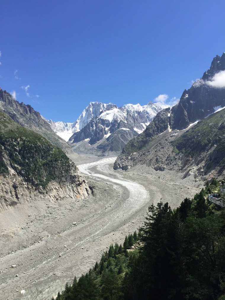 Mer de Glace is a 3.4 mile long valley glacier that sits 660 ft deep. It is regarded as the longest and largest glacier in France, and the second longest in the Alps after the Aletsch Glacie.