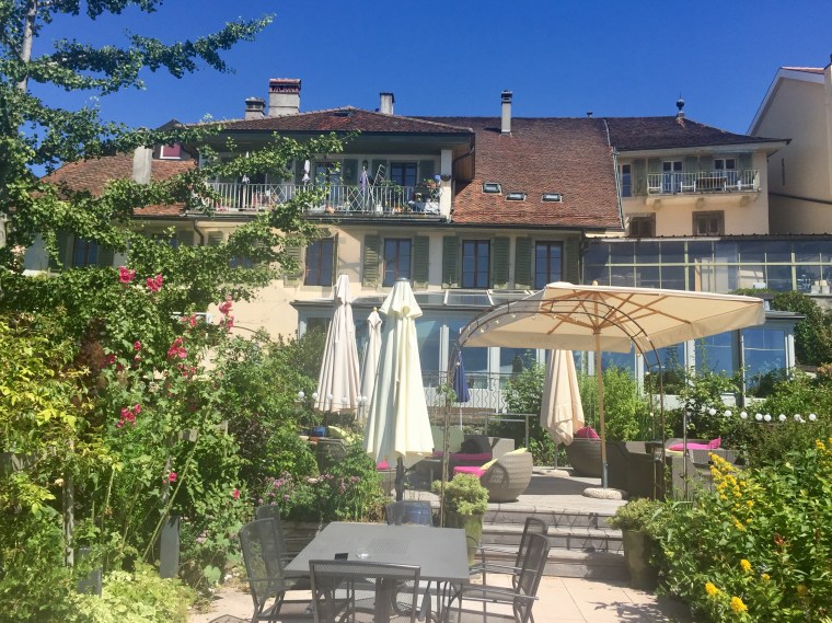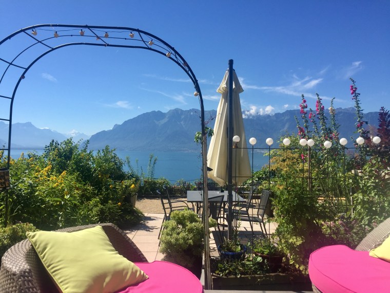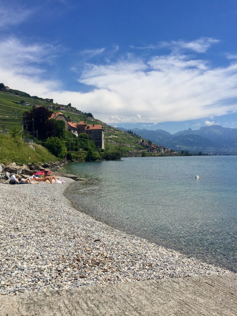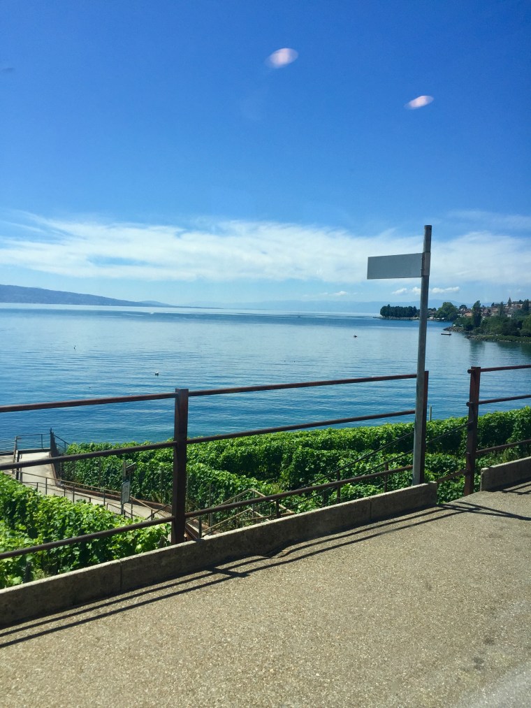 Domaine Bovy was a lovely place to spend our afternoon. The Bovy family are an old Vaud family, natives of Chexbres. The cellars date from the 16th century and the first wines were acquired in 1779. Since then the family has passed down the estate/winemaking business directly to family. Now in the 4th generation, Bertrand and Eric run the whole operation. Bertrand and Eric were the perfect hosts – they told us about the wine and poured us extra big tasting portions! Who doesn’t love tasting wine with the winemakers?! We tasted wines outside in the shade overlooking Lake Geneva. It was the most lovely day…blue skies, rows and rows of vines, birds chirping and crisp cold white wine and rosé were being poured. (They also serve tasty apero food) The Bovy brothers told us that the reason why Lavaux wine doesn’t make it to the States or other parts of the world is because there is such a small about produced that 95% of the wine is consumed locally. That’s the reason why we don’t really know about it. SOOOO that being said, we bought wine to take home with us!