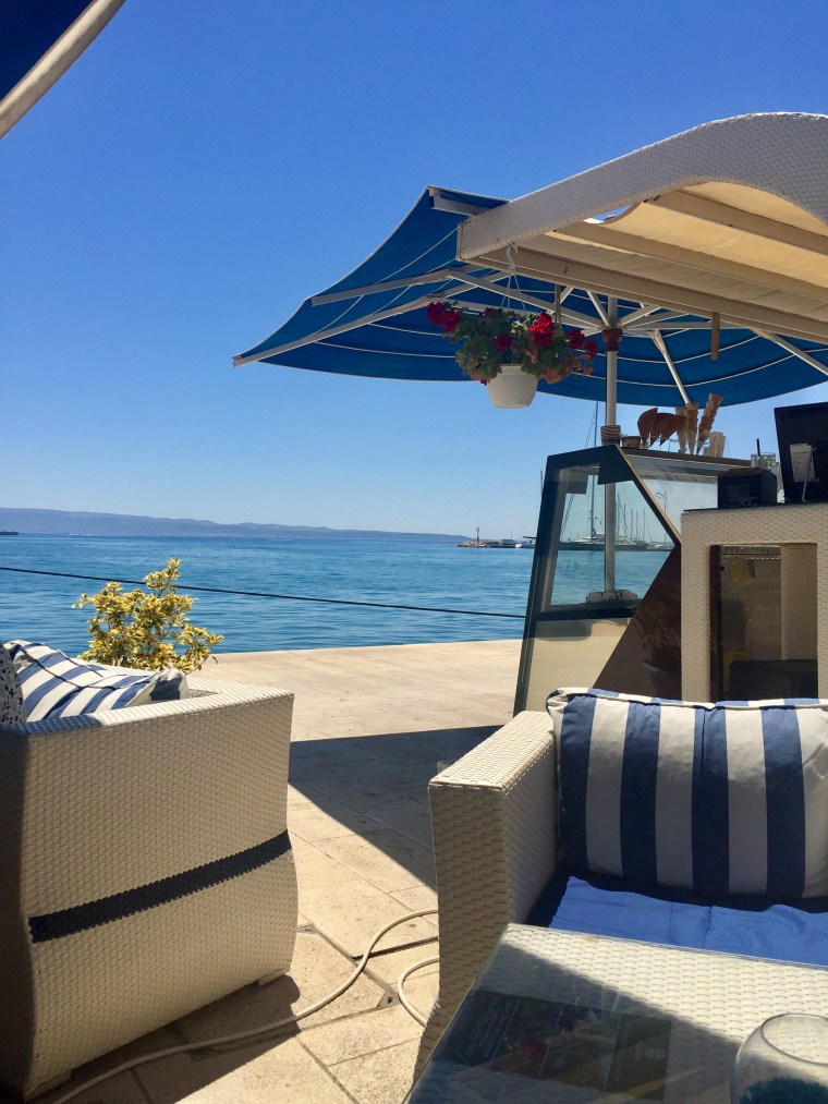 F Marine is part of the F group – a restaurant group with a couple different restaurants around Split. We grabbed a glass of rosé here in the afternoon and enjoyed the lounge chairs and beautiful views looking back on the town.
