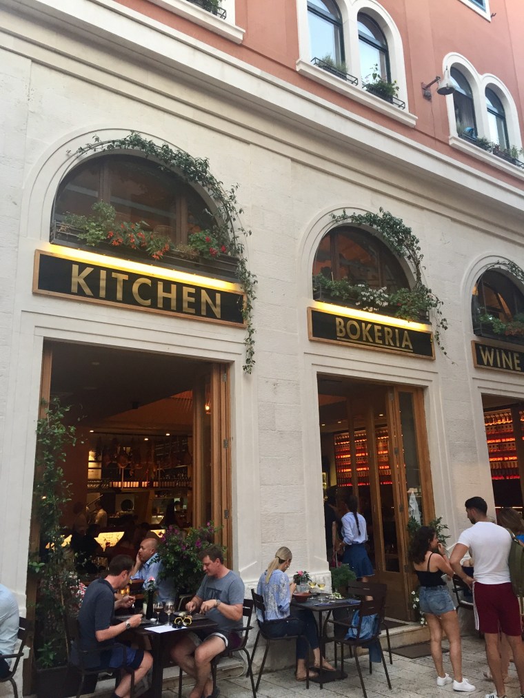 WELL WORTH THE WAIT! This was one of our favorite dinners in Croatia…not only was the food amazing, the service was phenomenal. Villa Spiza is a family-owned restaurant in Old Town. They purchase all their ingredients locally – fish at the fish market down the street, the vegetables at a farm nearby and the wine sourced straight from Croatia. While waiting for our seats in the alley (they don’t take reservations), we made friends, drank wine and watched items get crossed off the menu. Don’t let that deter you from leaving…the sea bream we were eyeing ran out, but the owner promised he would make us a lovely meal. They cooked us up amberjack filets, potatoes and spinach. It was honestly one of the best pieces of fish we’ve tasted. Our three hour dinner with seats at the bar was so fun – the entire restaurant took a shot of Rakia, we took pictures with the chef + family members that owned the restaurant and cheers with glasses of wine. It was a restaurant experience we will never forget – felt like we were in a family home. What a warm welcome, Villa Spiza gave us to Croatia. THANK YOU!