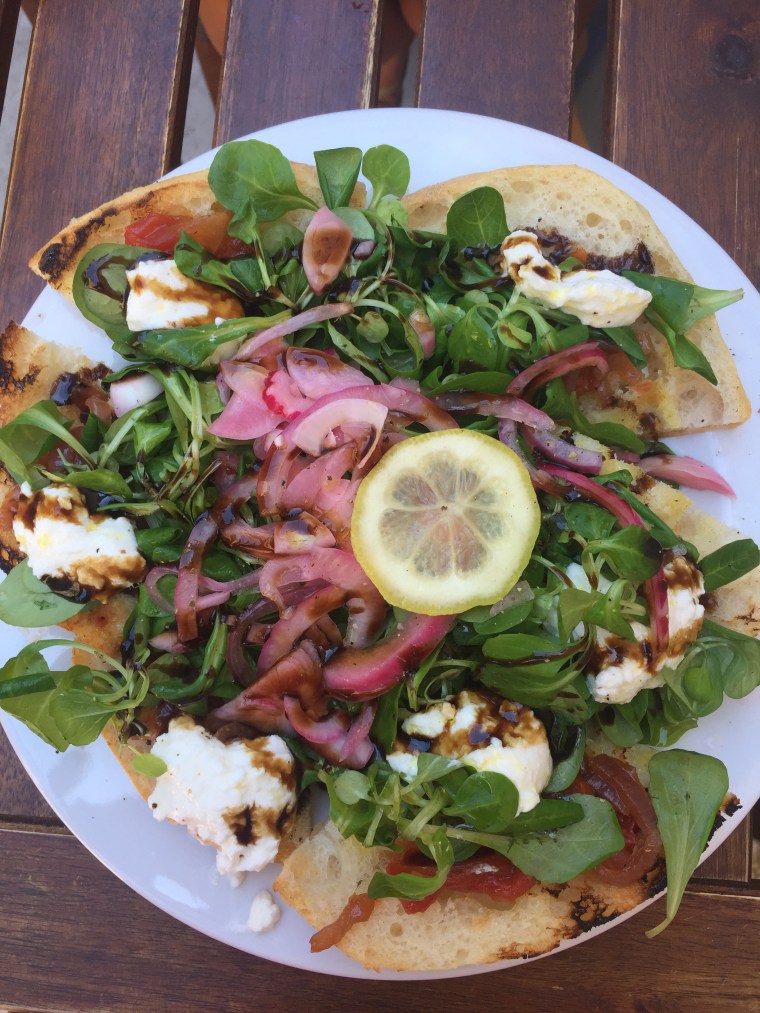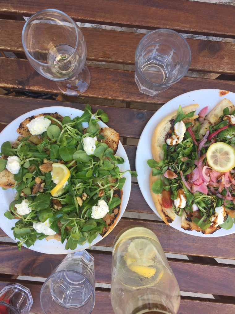 Fig Café was our go-to place to get fresh greens for a great price. Located in a hidden alley down the way from our Airbnb, we dined here twice. Once for lunch and the other for breakfast. For lunch we ordered one fig and one roasted tomato flat bread (with rosè of course!)….delicious! Fresh ingredients from local farms, which refueled us before we headed to Hula Hula Bar! For breakfast, we ordered the breakfast burrito. Highly suggest! Definitely try Fig Café if you like fresh, healthy food that actually tastes good and fills you up!