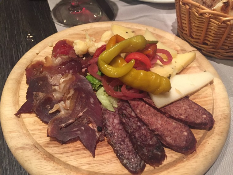 We had heard a lot about Taj Mahal and wanted to try something unique. Taj Mahal serves traditional Bosnian food. We ordered the “Taj Mahal Platter” which contained dried cured beef and cheeses. It was delicious. For our mains we had the lamb and turkey kabobs. Everything was tasty and the experience was pleasant. Make a reservation – the place is popular!!!