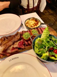La Maison: French Bistro in the heart of Central London serving dishes using locally sourced and freshly prepared produce. The space is filled with artwork by artists sourced from the Paris at Puces market. Suggest starting with the Asseitte Aperitif and ending with the Cote de Boeuf.