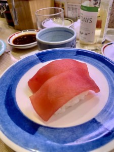 It doesn’t look like much from the outside (or inside), but this conveyor belt sushi (kaiten-zushi) restaurant is FANTASTIC and very affordable! We tried a variety of rolls, sashimi and of course saki and beer! The space was filled with mostly locals on onside and then some tourist in our area…very few though! Suggest coming to Musashi Sushi for lunch – which is a preferred time to eat sushi by the Japanese.