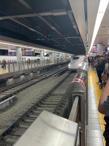Knowing we were traveling between three different cities on our week long trip to Japan, we purchased the JR Rail Pass about a month prior to leaving on our trip. The JR Rail pass is worth every penny – we could use any JR line including the bullet trains. The pass made travel so much easier and cheaper! Upon arrival in Japan, we took our passes to a ticket office to get validated. Be aware – lines at the Haneda airport could be long – luckily we hustled off the plane and beat the crowd to the line after going through customs. Once validated, we hopped on the train to Shinagawa Station, from there we boarded our bullet train to Kyoto. It takes about 2 hours and 45 minutes to get there from Tokyo. The trains are clean, fast and quiet. You don’t hear people talking to one another or on their cell phones – very different than most train experiences we’ve been on. It was an easy trip to Kyoto – highly suggest getting the JR Rail Pass. (Middle photo is the train we took to Shinagawa station, and the last image is the JR Bullet Train)
