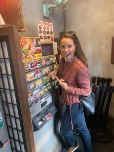 On our last day in Kyoto, before getting on the train we wanted lunch so we decided on Ichiran Kyoto Kawaramachi. Ichiran was quite the experience – you order at a vending machine outside, get a ticket, go sit down inside at seats that are like cubbies. Once seated, you mark on a piece of paper your preference on spiciness, vegetables and extras and then a window opens and a chef takes your paper. Window closes and you wait. Minute later the window opens, drink is served and then about 2 minutes later your ramen is delivered. It was such a unique experience we would highly suggest everyone going. The ramen was delicious too – not your standard top ramen. hehe! Video of experience HERE.