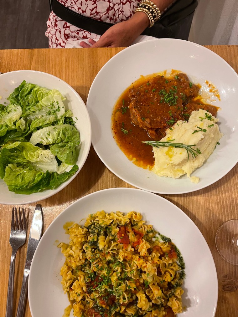 We had passed L’Olive every day on our way to the flat. It was a quaint restaurant with outdoor seating and Mediterranean menu. We hadn’t planned to dine here, but after seeing the dishes being served we had to try it! The green salad, pasta and osso bucco didn’t disappoint. The portions were huge and the price was reasonable compared to some other restaurants we had been. (Nice break to the credit card!) If you are looking for a more relaxed atmosphere, head to L’Olive.