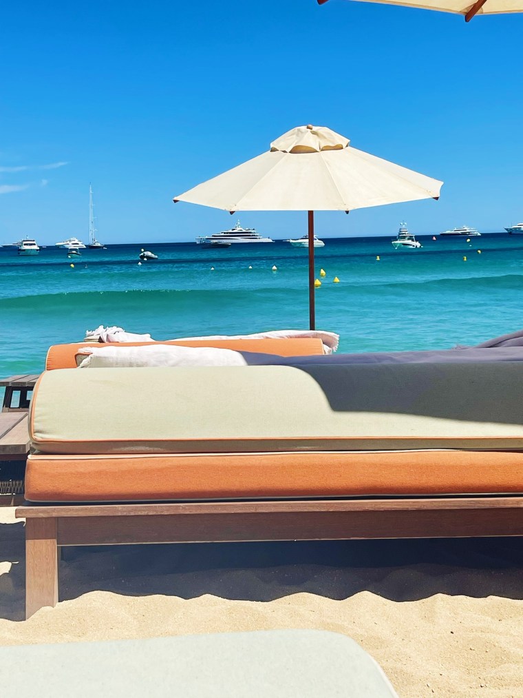 Le Club 55 was at the top of our list and mostly due to the long history behind this restaurant and the fabulous boutique. We had sun loungers and lunch reservations reserved for the second day, but decided to change as we were told the vibe of the beach club is more chill. More of an older crowd and the sun loungers were cushions in the sand. That didn’t stop us from visiting the boutique though. We walked down the beach to visit this famous club. The pareos, bags, linens and clothing didn’t disappoint. It was hard to not buy everything in the store! So happy we went as we came home with some great Le Club 55 items. We would definitely visit the boutique again!