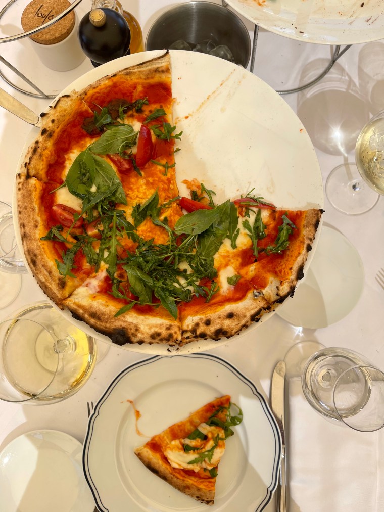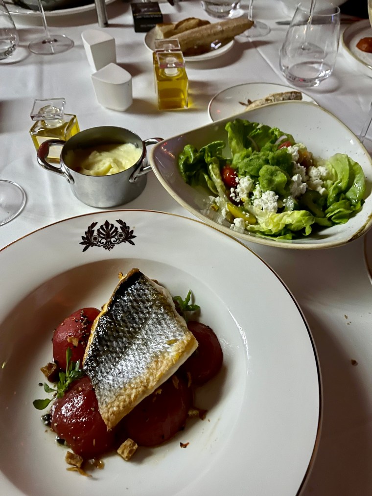 LouLou was our second beach club in Saint-Tropez. Pivoting away from the bohemian vibes, it was designed in a playful chic and relaxed spirit advocating an elegant art of living The yellow and white stripped cabanas, and the white umbrellas made for a picturesque foreground against the bright turquoise sea. We enjoyed a long day in the sun and ended it at the restaurant for a late lunch. Our order – truffle pizza appetizer, salads, fresh fish and a side of fries! The music turned up the vibe of the restaurant especially when the song “Welcome to Saint-Tropez” played! We loved LouLou!