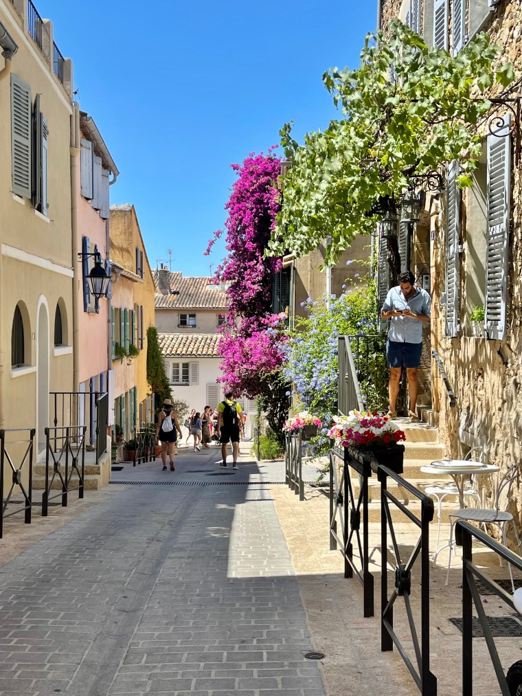Welcome to Saint-Tropez !! What once used to be a small fishing town is now a port filled with million dollar yachts bursting with glitz, glamour, charm and a whole lot of fun! Old town is home to quaint cobble stone streets, cafés, shops and boulangeries. During the summer months the pastel colored buildings are accented by the flourish bougainvillea plants which makes for some great photo ops! During our stay in Saint-Tropez we got to enjoy both the town as well as the famous Plage de Pampelonne. Unfortunately we didn’t check everything off our list, which is now more reason for us to plan another trip back. You won’t have to convince us. We hope you enjoy Saint-Tropez through this post!