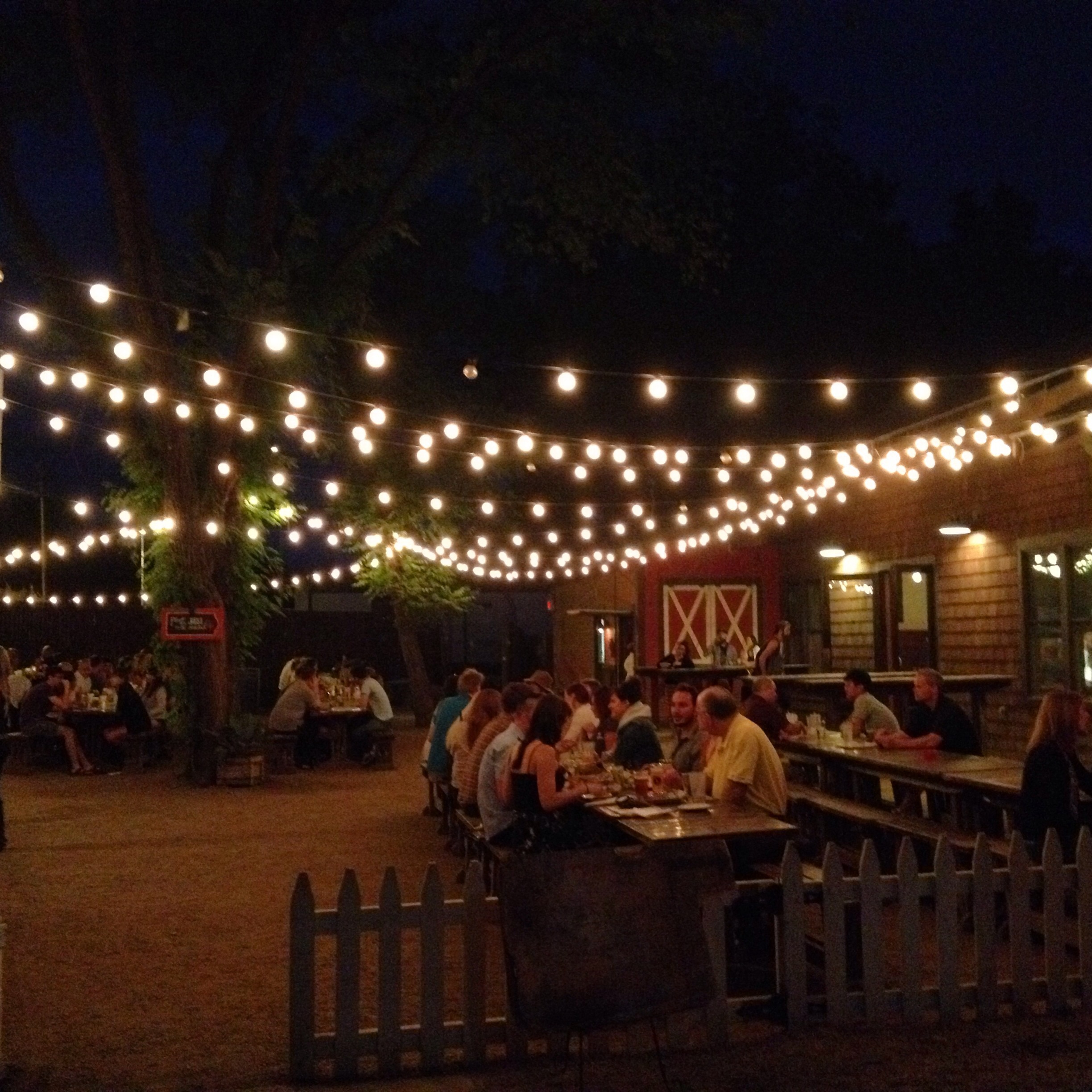 It’s a street filled with historic homes, many of the bungalow style, in downtown Austin, Texas. Rainey Street is positioned near Lady Bird Lake and Interstate 35 in the southeast corner of downtown. Our first stop – Banger’s Sausage House & Beer Garden. Great outdoor area filled with picnic tables and great ambiance.
