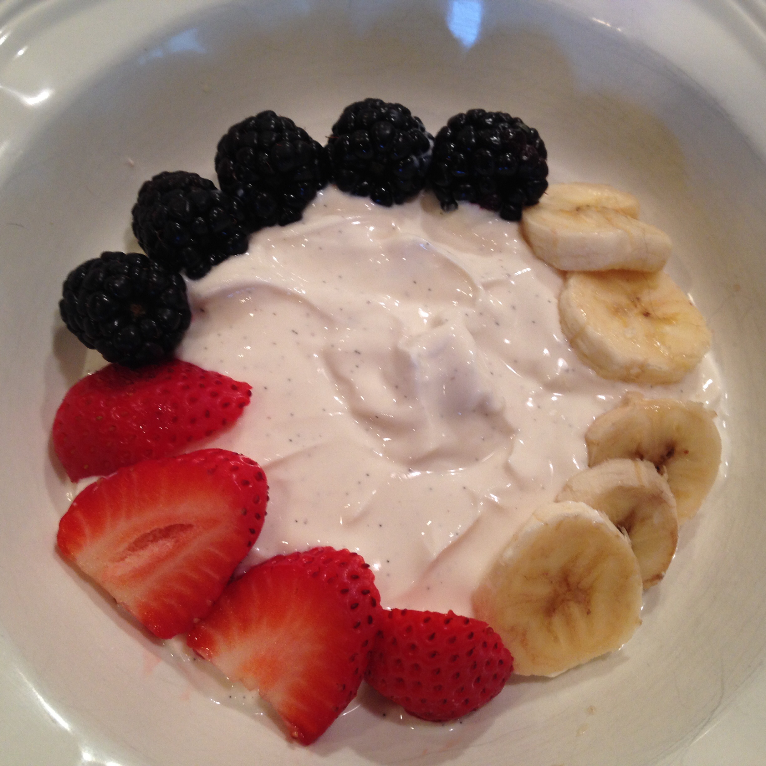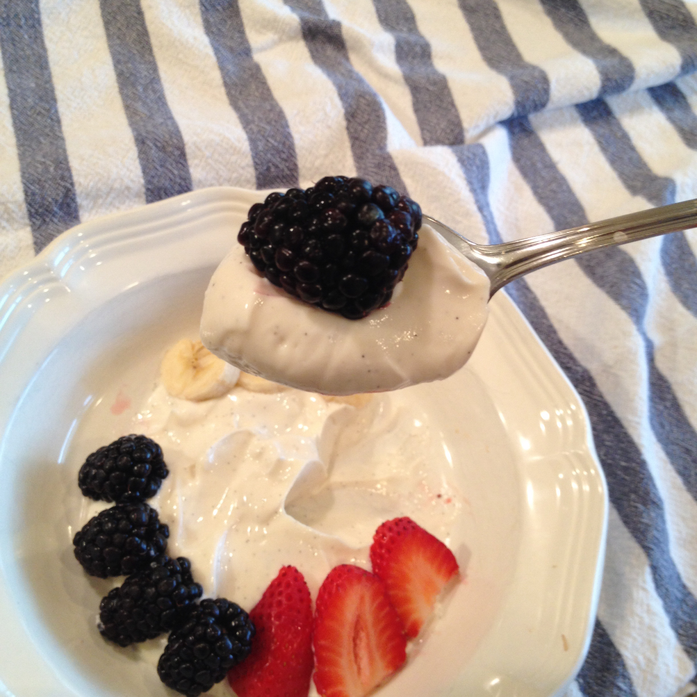 Lay out the washed blueberries on a mat or cutting board. Make sure the blueberries are fully dried. Using a skewer or a toothpick, dip the blueberries in the Greek yogurt. Swirl around, making sure to get enough Greek yogurt on the berry to freeze. Place on a parchment paper – lined cookie sheet.