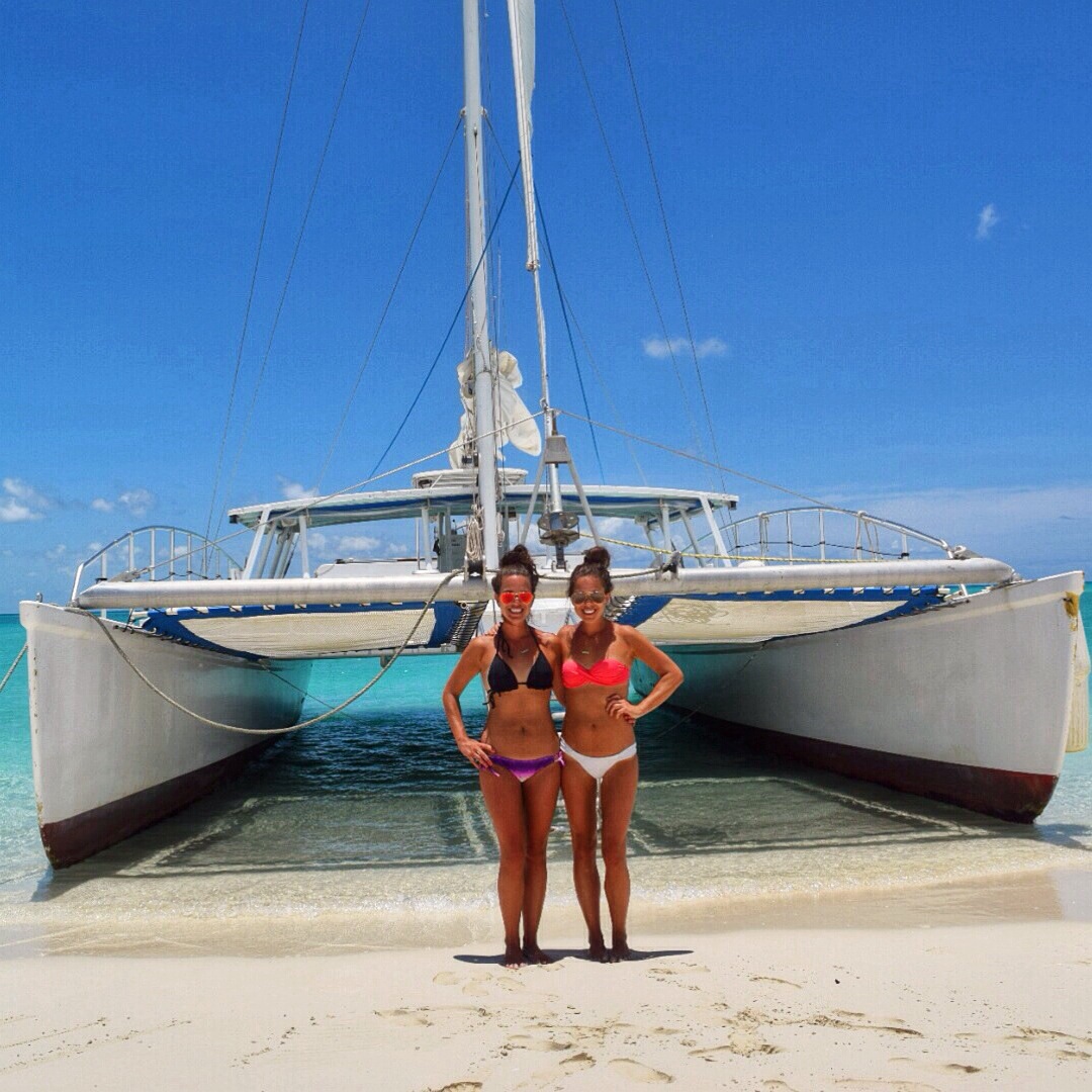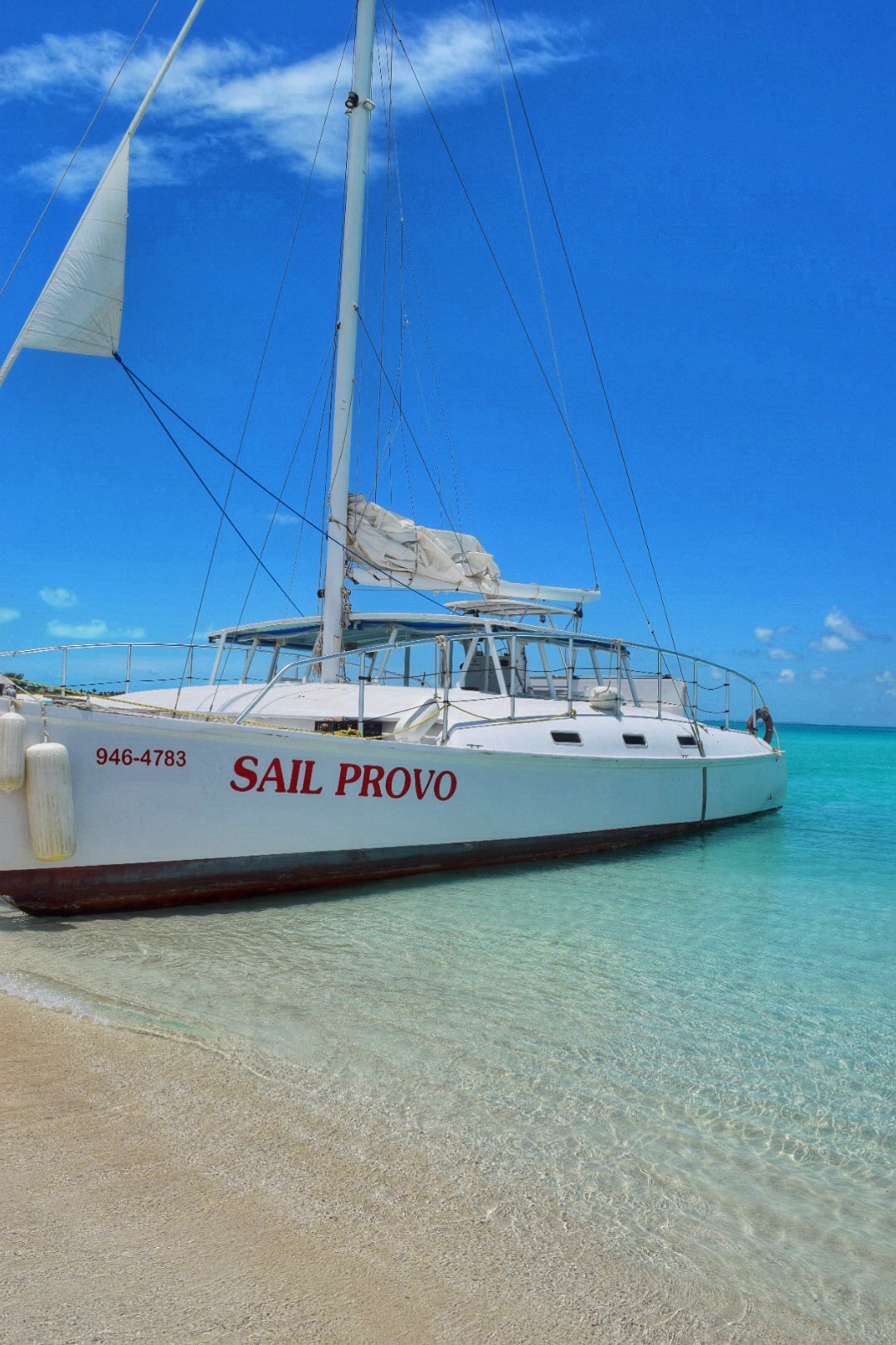 What better way to see Turks & Caicos then from the water?! We hired SAIL PROVO to take us around Grand Turk and to a northern cay – Pine Cay – for full day of snorkeling, sailing and exploring. Oh and I can’t forget the delicious lunch and rum punch! We picked the catamaran up at Walkin Marina leeward and sailed out past Blue Haven Marina towards the open ocean. Once we were about a 1/2 mile off the coast, we stopped at a reef to snorkel. The water was warm and crystal clear so it made for a delightful snorkeling experience. We saw a ton of tropical fish, colorful coral and cool looking reefs. After about 45 minutes, we sailed towards Pine Cay to a private beach know as Sand Dollar beach. No need for an anchor, we literally beached the boat. As we walked on the fluffy white sand we spotted nothing but water, sea shells and a group of rain clouds in the distant. Since it was Sand Dollar beach, we grabbed our snorkels and started hunting. We learned that the brown sand dollars are alive – so we left those alone – the white ones were good to take! Unfortunately we were not that lucky – only one person snagged a sand dollar – and that one person was one of T.W.O.! After our treasure hunt we boarded the catamaran for a bbq lunch – chicken, sandwiches, fresh fruit and of course rum punch and Turks Head! It was the perfect atmosphere! Lunch ended, but not our day. We headed back towards the Marina and made a stop along the way to snorkel again. At this spot we found a 3 foot lobster. Biggest one we have ever seen! It was hidden in the reef and our Dad spotted it. That itself was worth the stop for sure! Once on board, T.W.O. sailed us back to the marina. Yes…you can call us Caribbean certified skippers that’s for sure! It was a lovely day and we had a great time with the Sail Provo crew. Thanks again for the memories and such a great experience. Can’t wait to come back!!