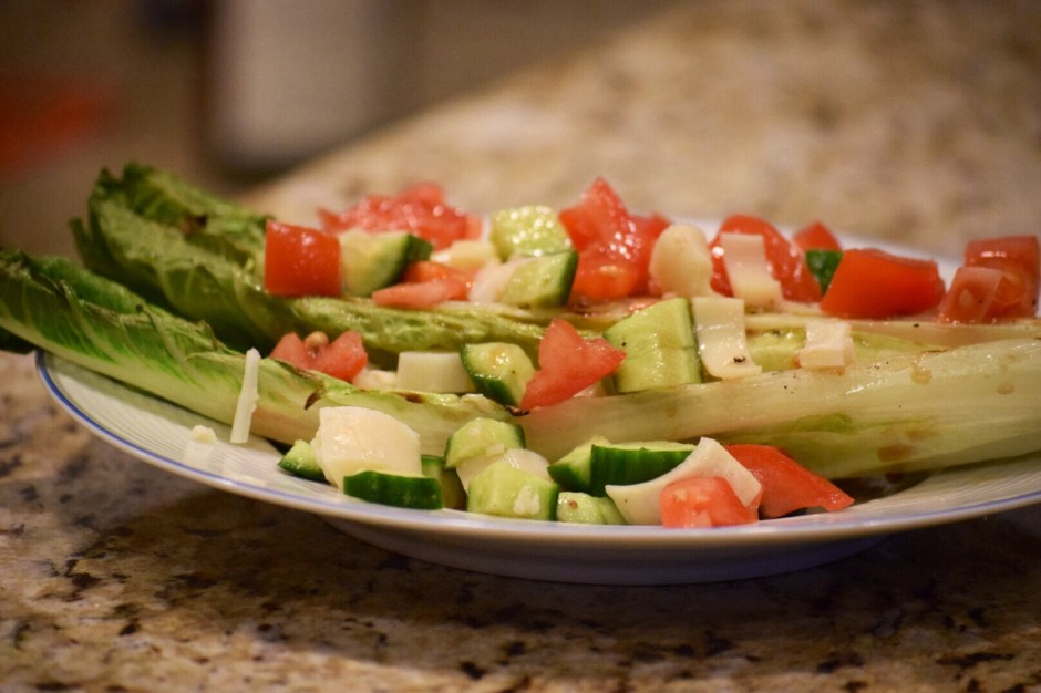 Have you ever thought about grilling lettuce? Well you will after reading this recipe. It’s a great way to bring more flavors to your fresh salad without adding the calories or the ingredients. T.W.O. combined the grilled romaine with fresh vegetables and a homemade dressing. Check out the recipe below.
