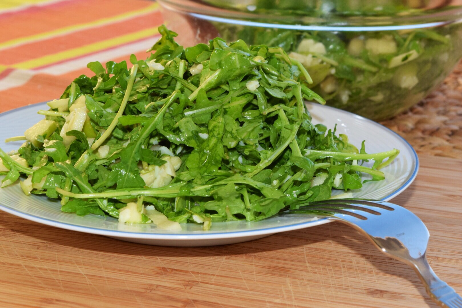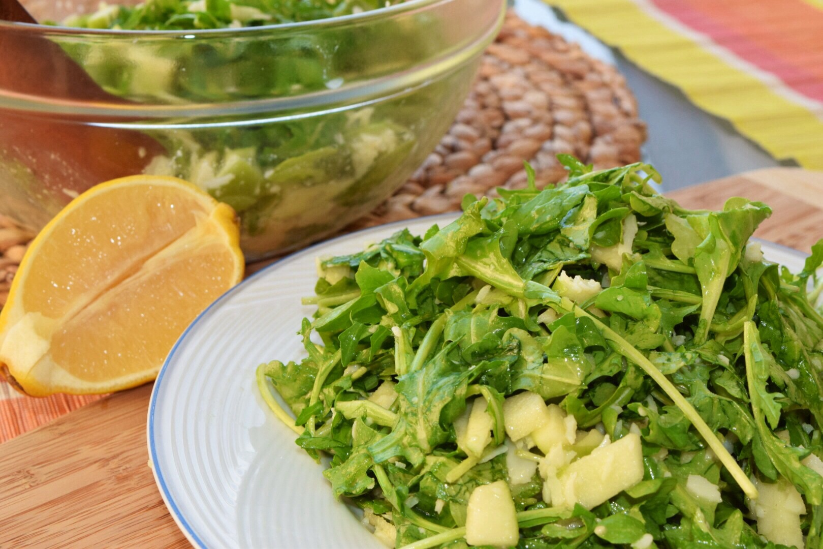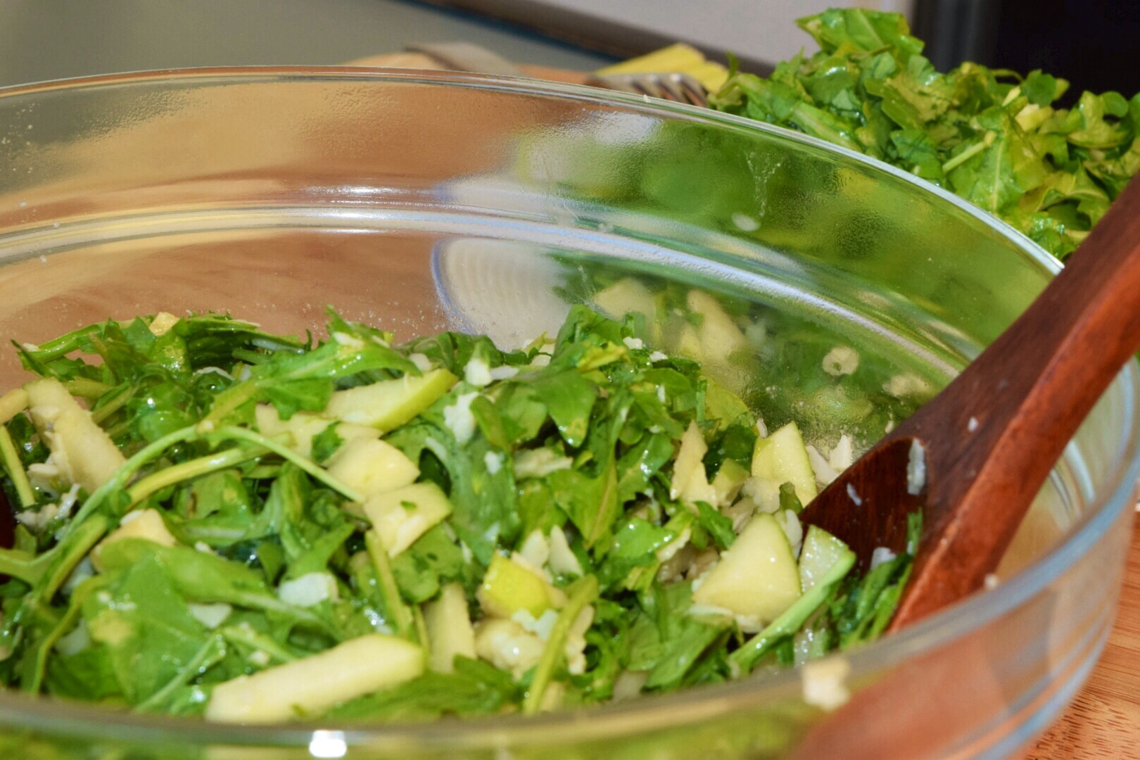 T.W.O. created this Arugula Salad to complement their surf and turf dinner. It’s a simple recipe that includes green apples and shaved parmesan reggiano cheese with a homemade lemon dijon vinaigrette.