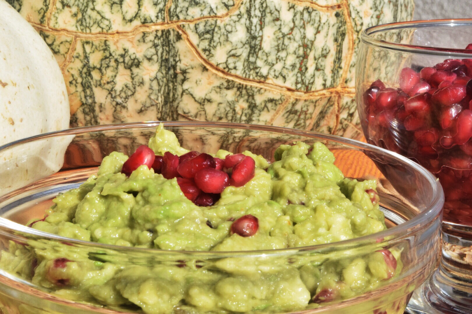 What’s trending these days? #everythingFall Right? Well T.W.O. is doing just that in our kitchen. Today we are featuring a classic dish, guacamole, and “Fall’in” it up with pomegranates. The pomegranates add a bit of sweetness, tang and crunch to your classic guacamole recipe. Grab your avocados and lets start chopping.