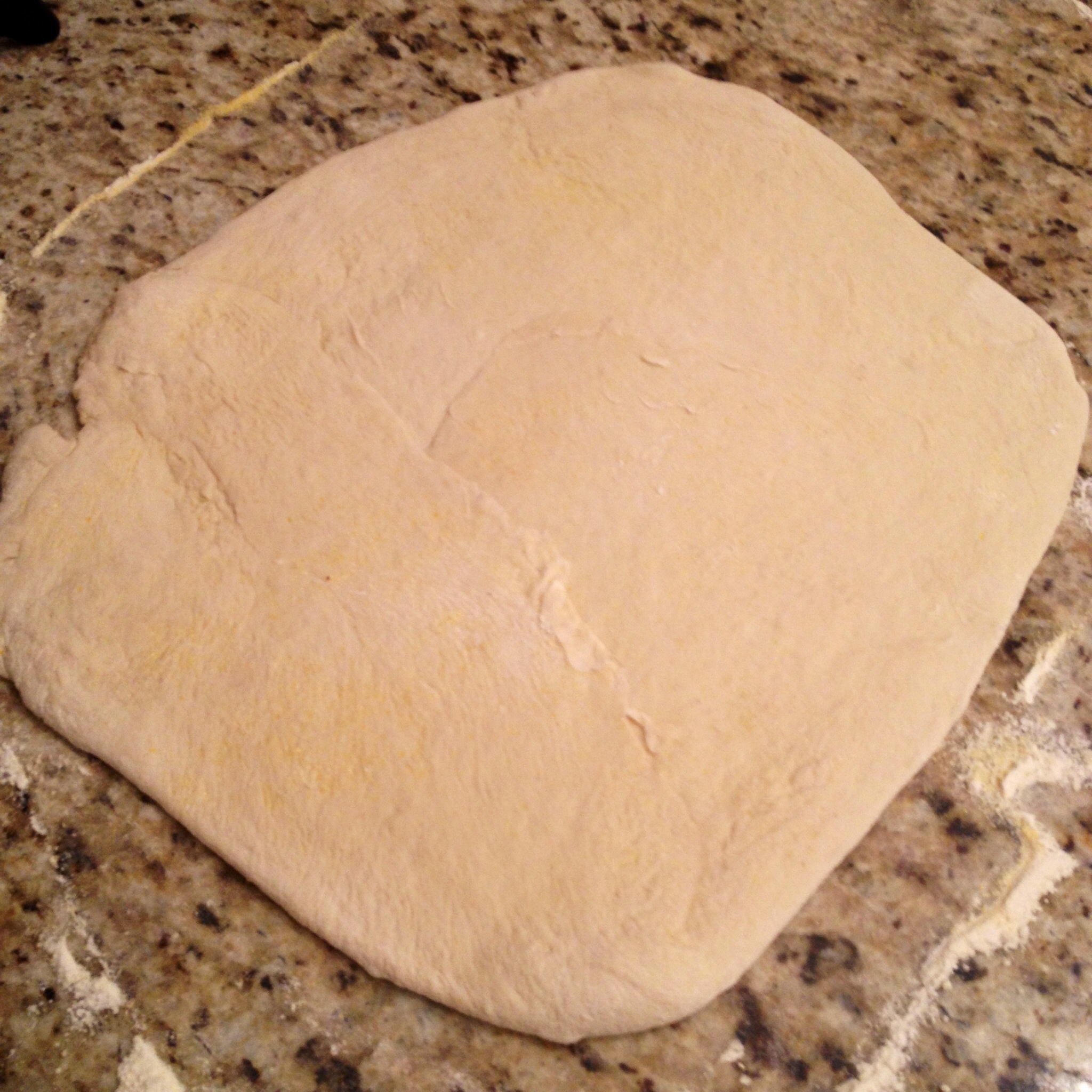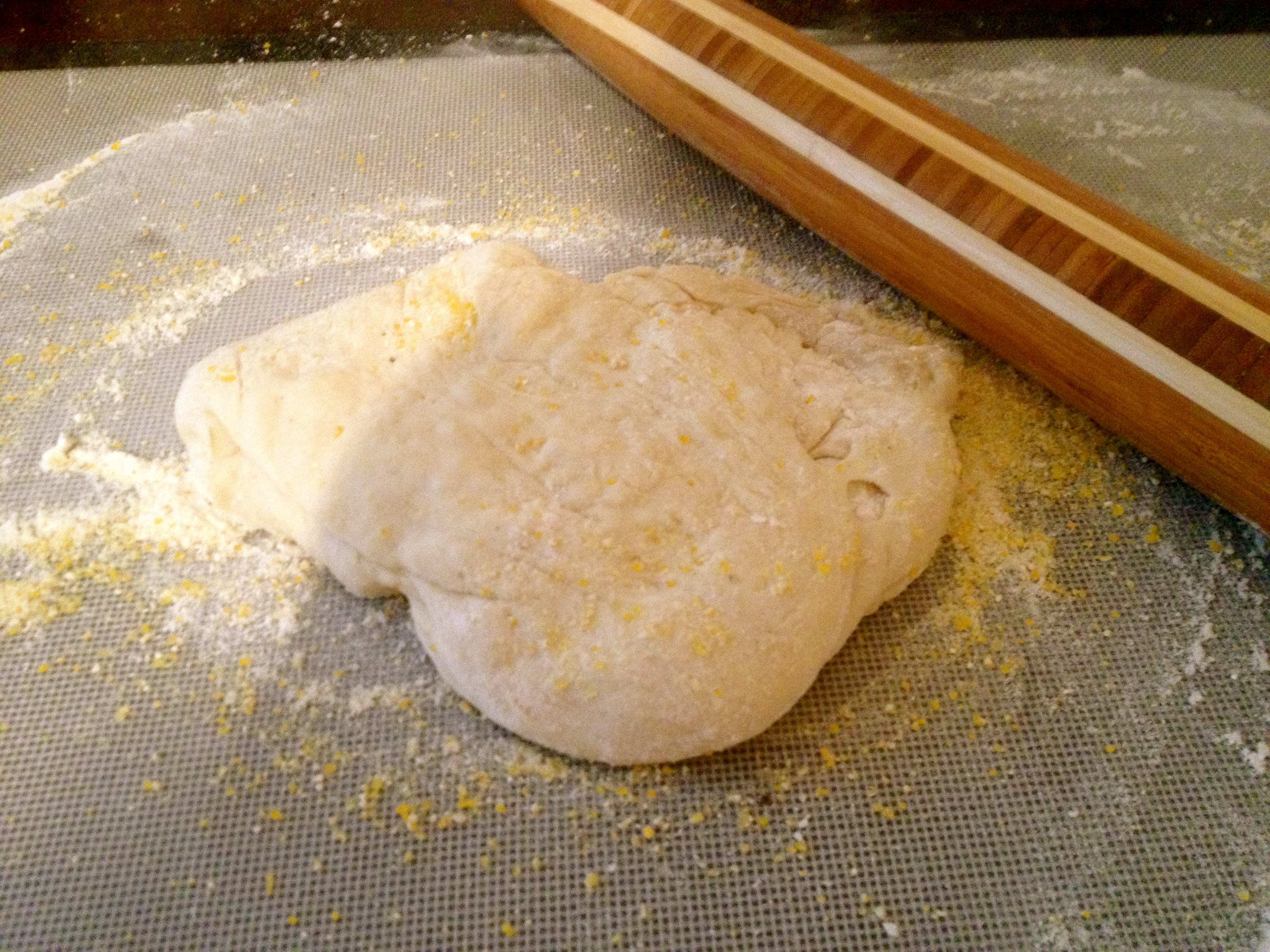2. Roll the dough out onto a lightly floured and cornmeal surface.