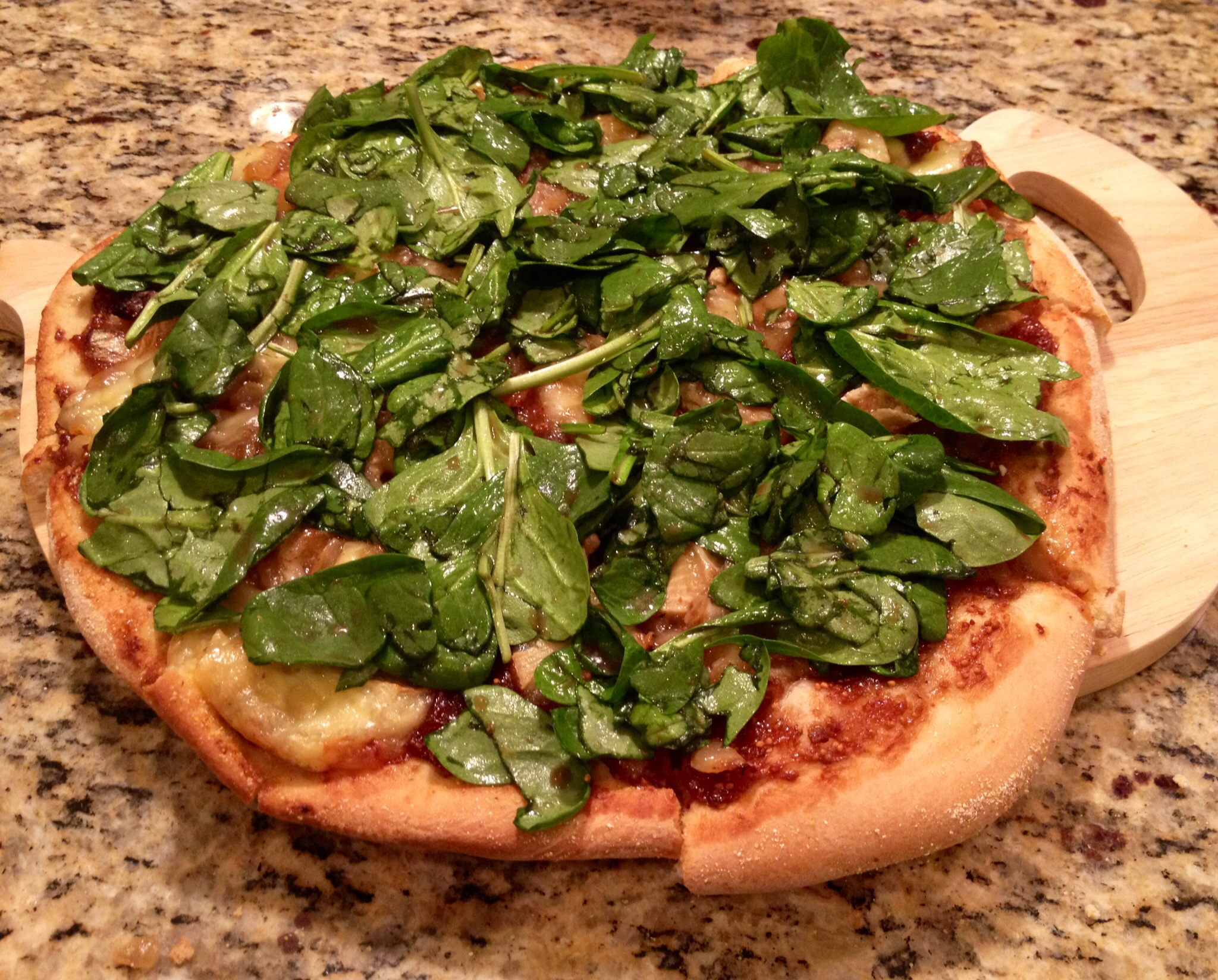 Fig & Brie Pizza with Caramelized Onions and Spinach