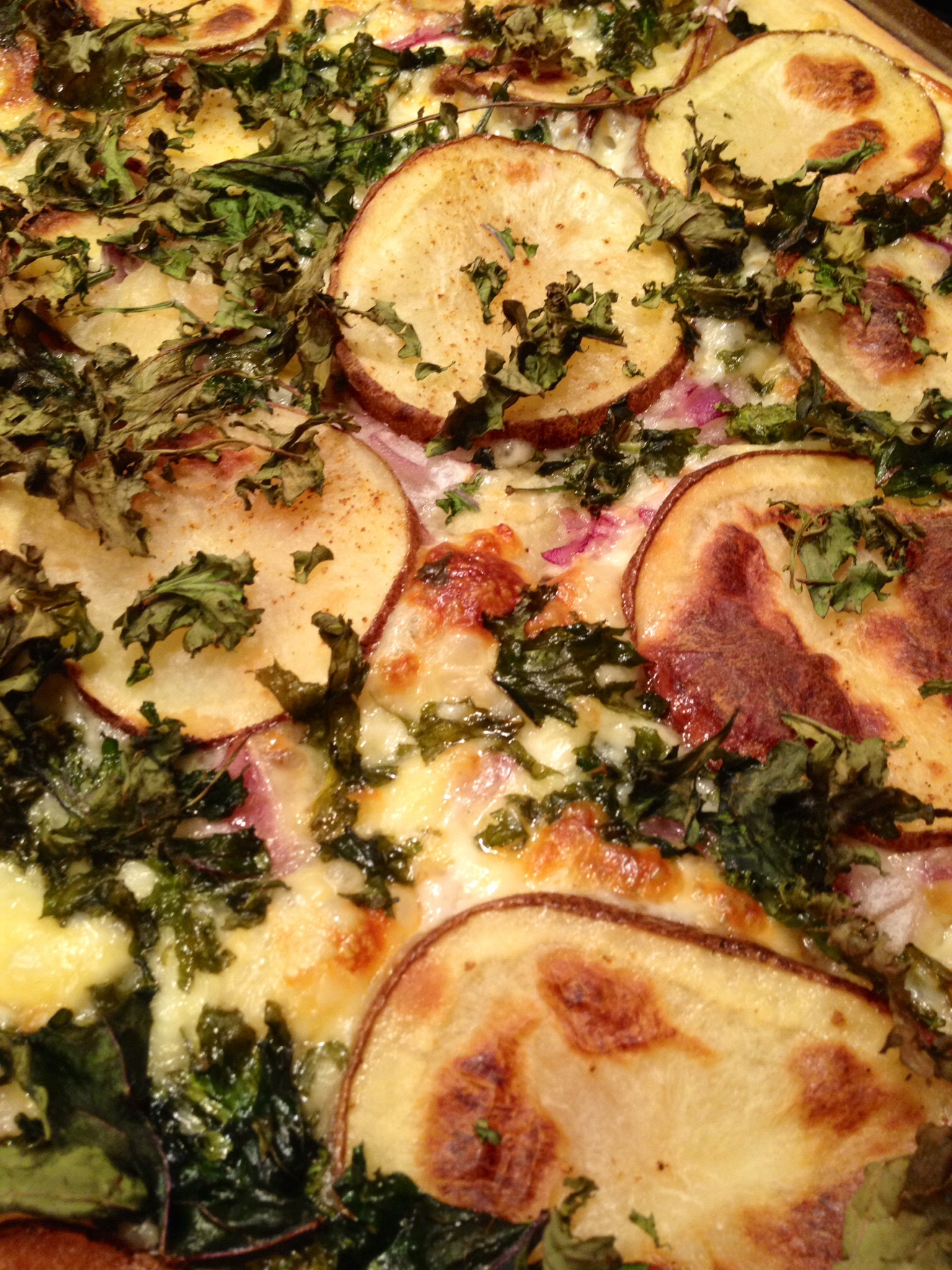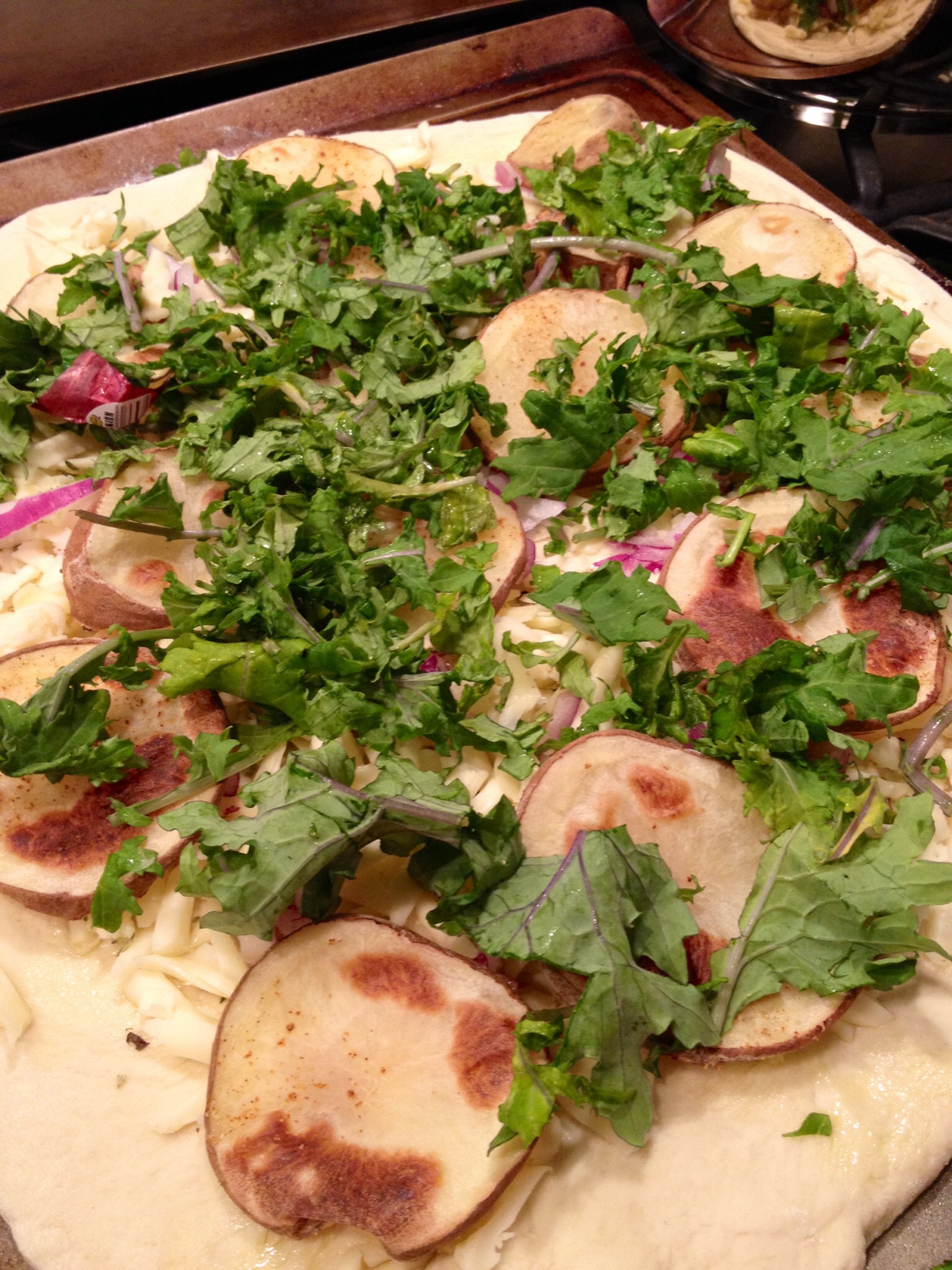 Potato, Kale, Garlic and Cheese Pizza + A Birthday