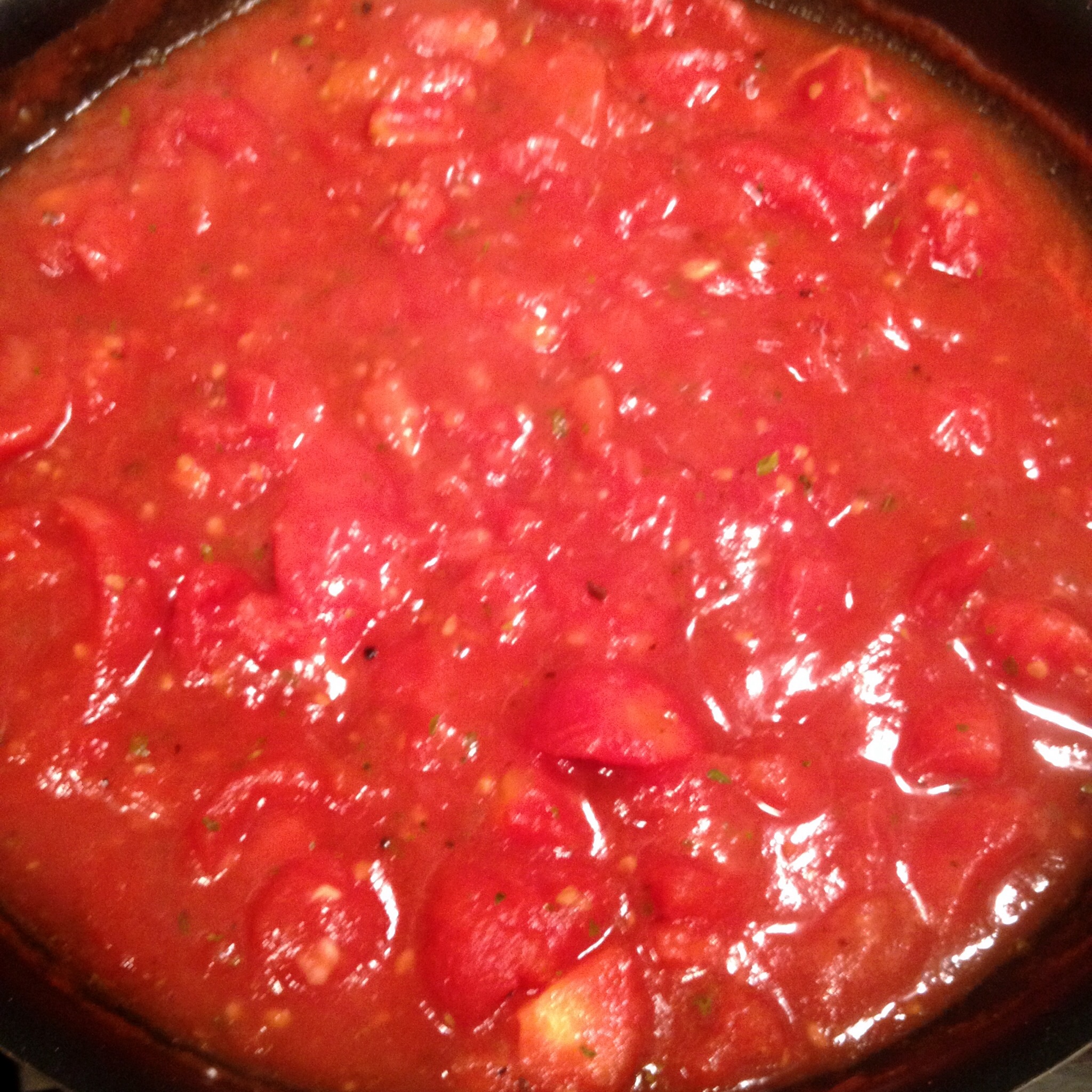4. Add to a heated skillet lined with olive oil. Sprinkle in garlic powder, salt and pepper. Slowly add cornstarch after the sauce has reached a bowl. Reduce heat and stir consistently. The sauce should thicken. Remove from heat.