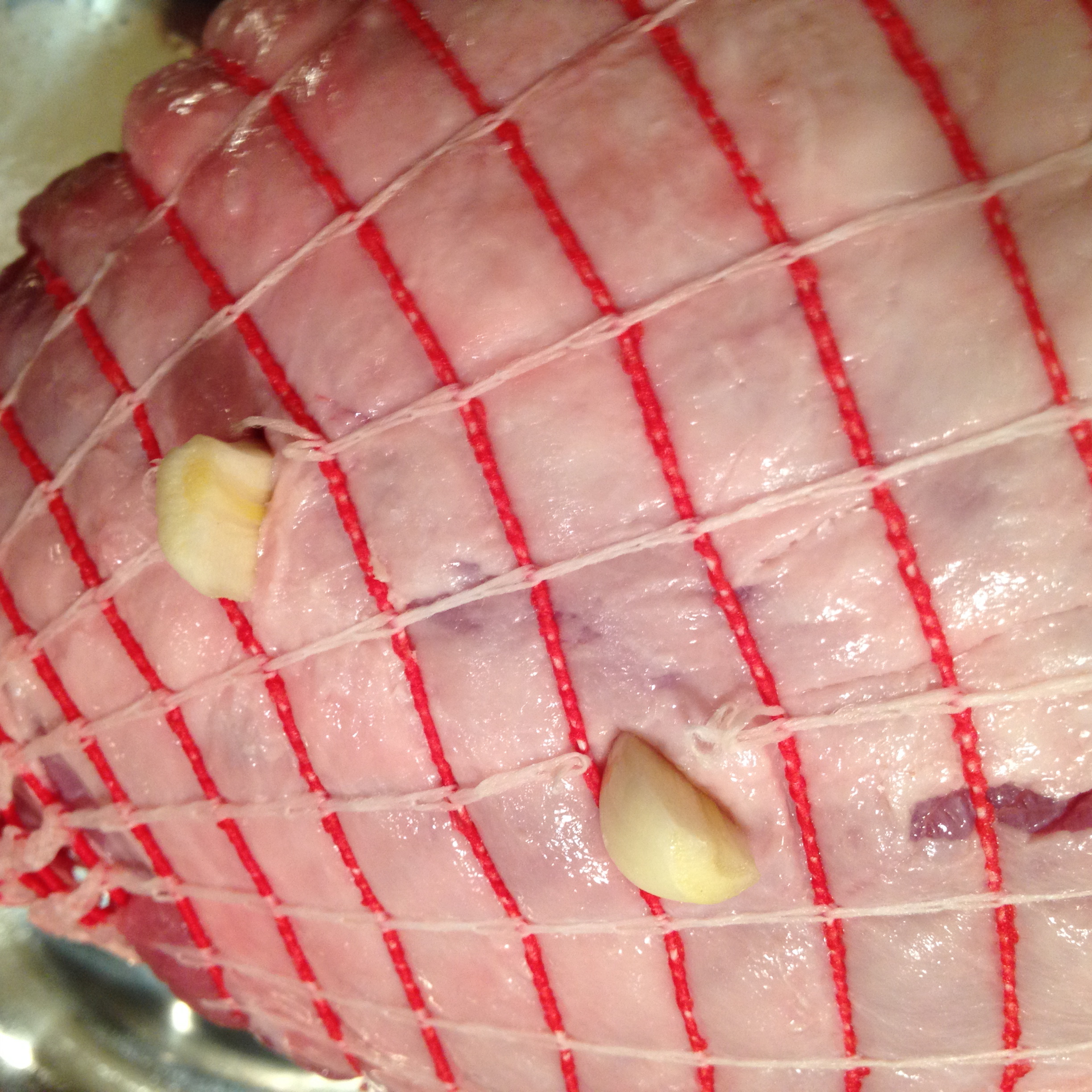 3. Add half of the fresh cut up basil. Tie whole thyme and whole parsley together with twine and place in pot.