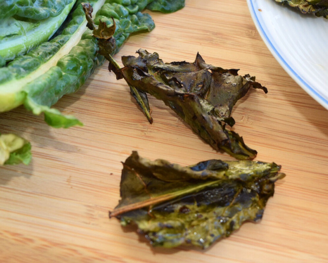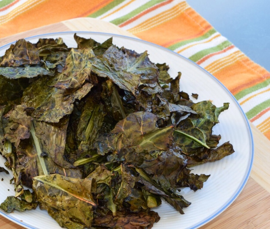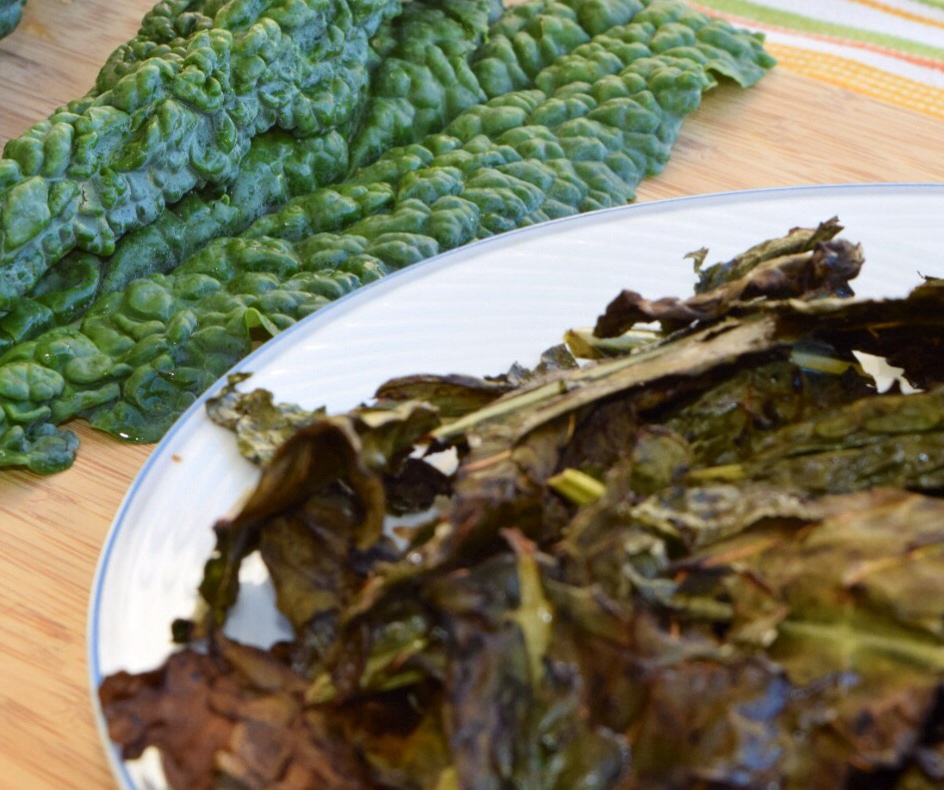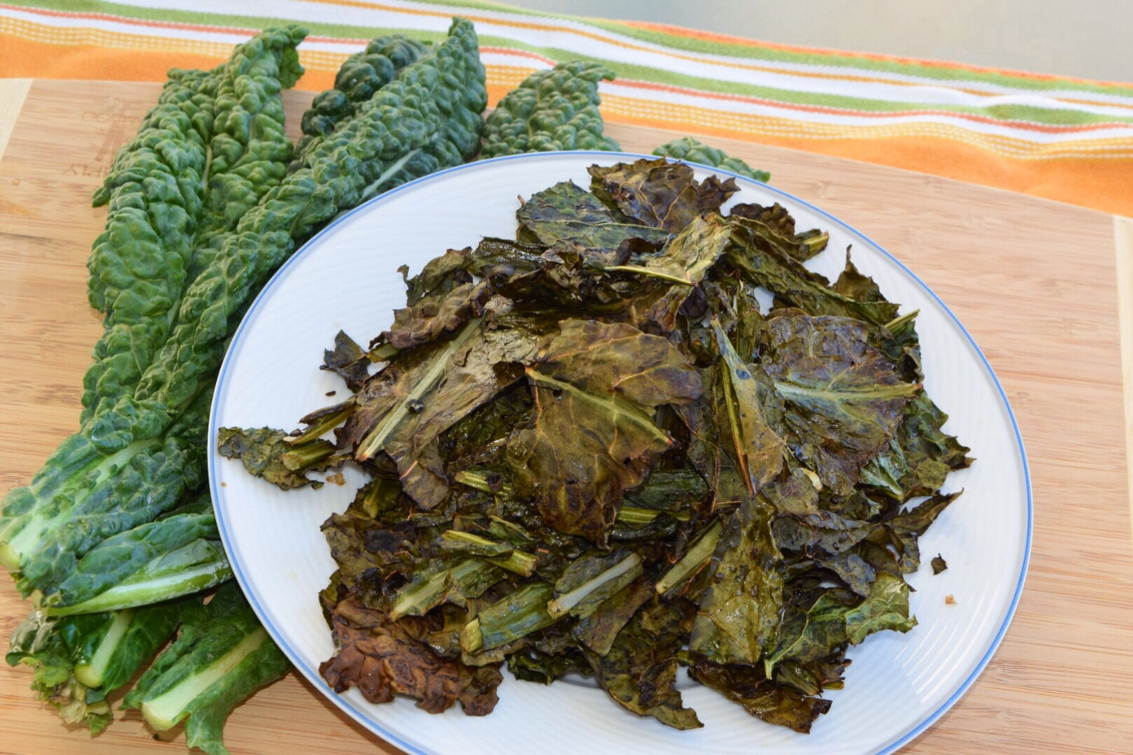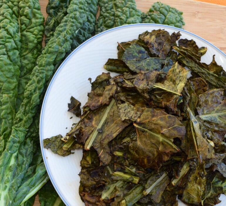 Here is another recipe to add to our cheese-less appetizer idea book – – – salty kale chips! With only four ingredients, this small dish is a great nibble for your guests while they wait for dinner to be served!