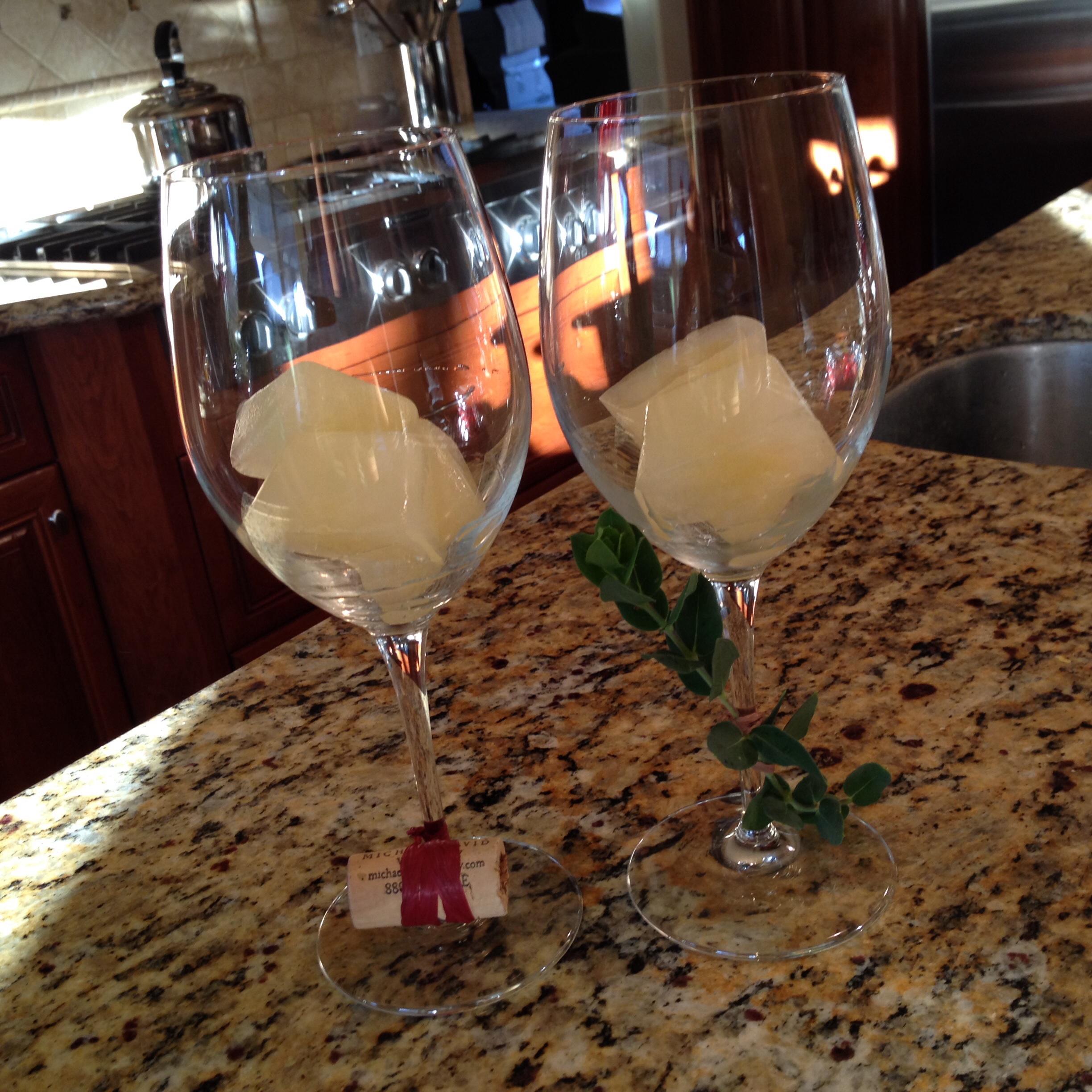 Begin by places 3 orange ice cubes into a wine glass. Next add your wine and Pellegrino. Ratios of wine to Pellegrino vary depending on the person pouring, but T.W.O. likes to use a ratio of 1:2, wine to sparkling water. Got to stay hydrated! Add 2-3 slices of orange and you have yourself a wine spritzer! It’s a perfect drink to enjoy on a warm day!