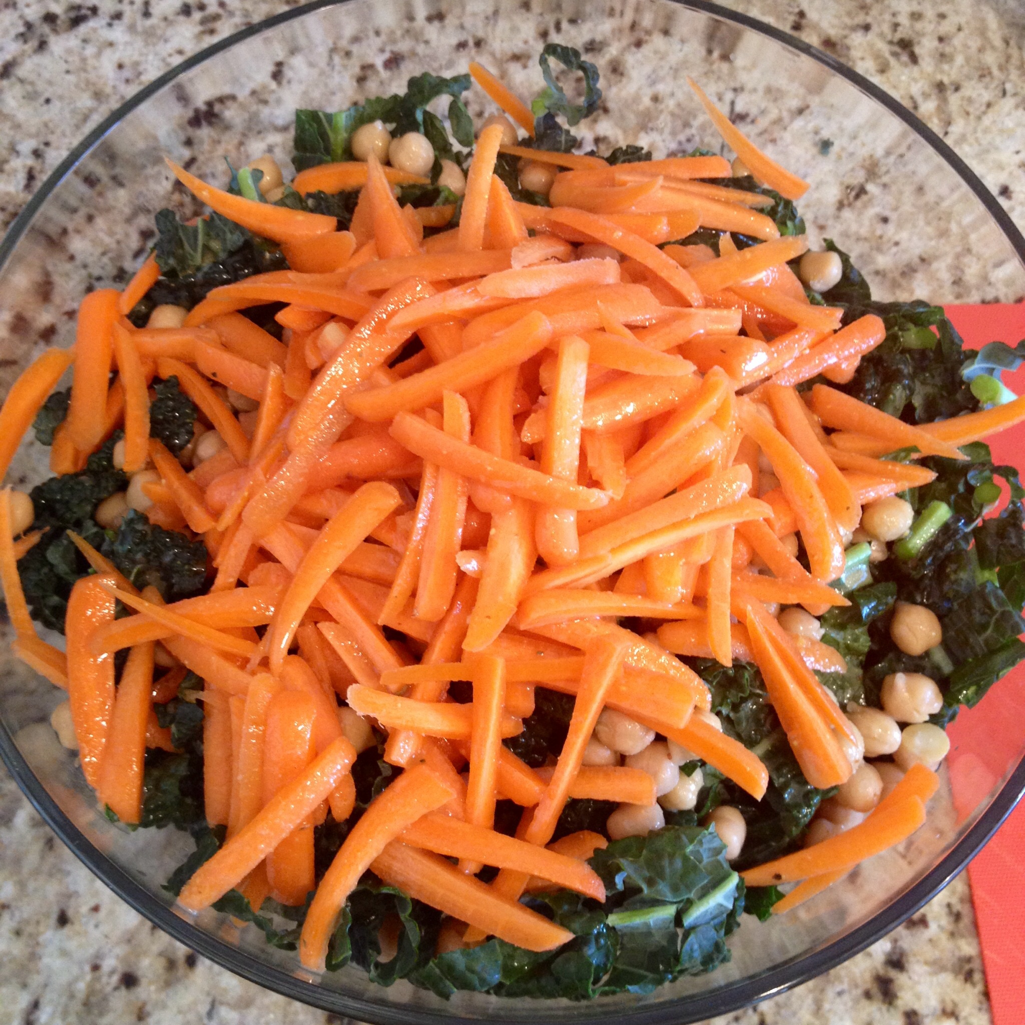 So with that being said, T.W.O. enjoys making kale salads for lunch to ensure they reach their required daily value of nutrients. Check out this Kale, chickpea, and carrot salad and lemon vinaigrette recipe below.