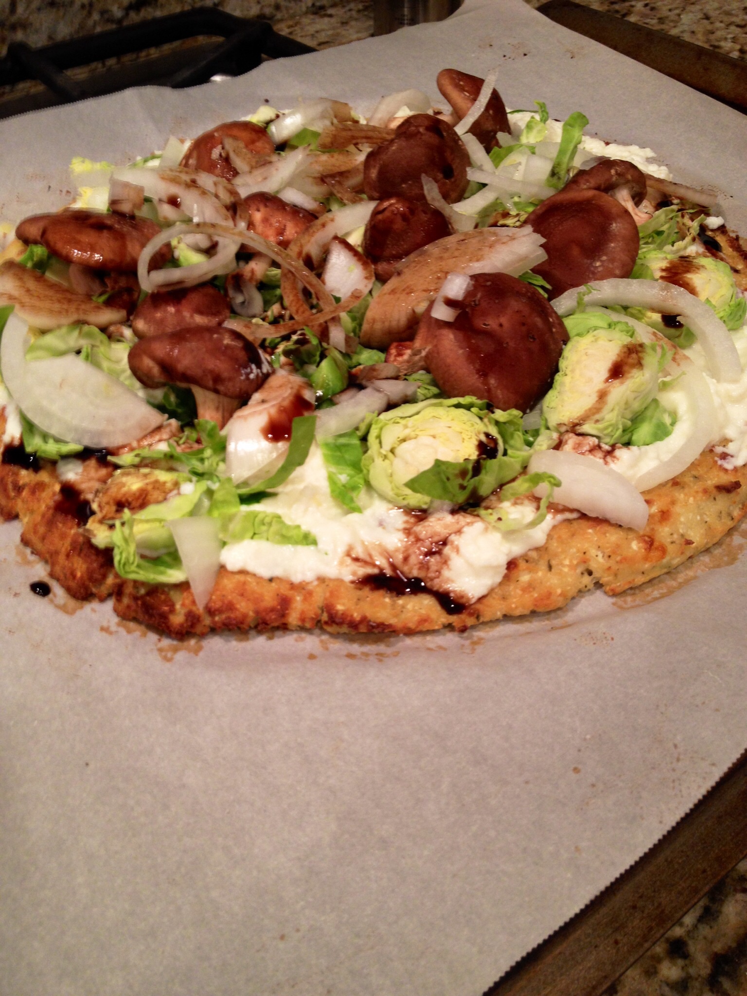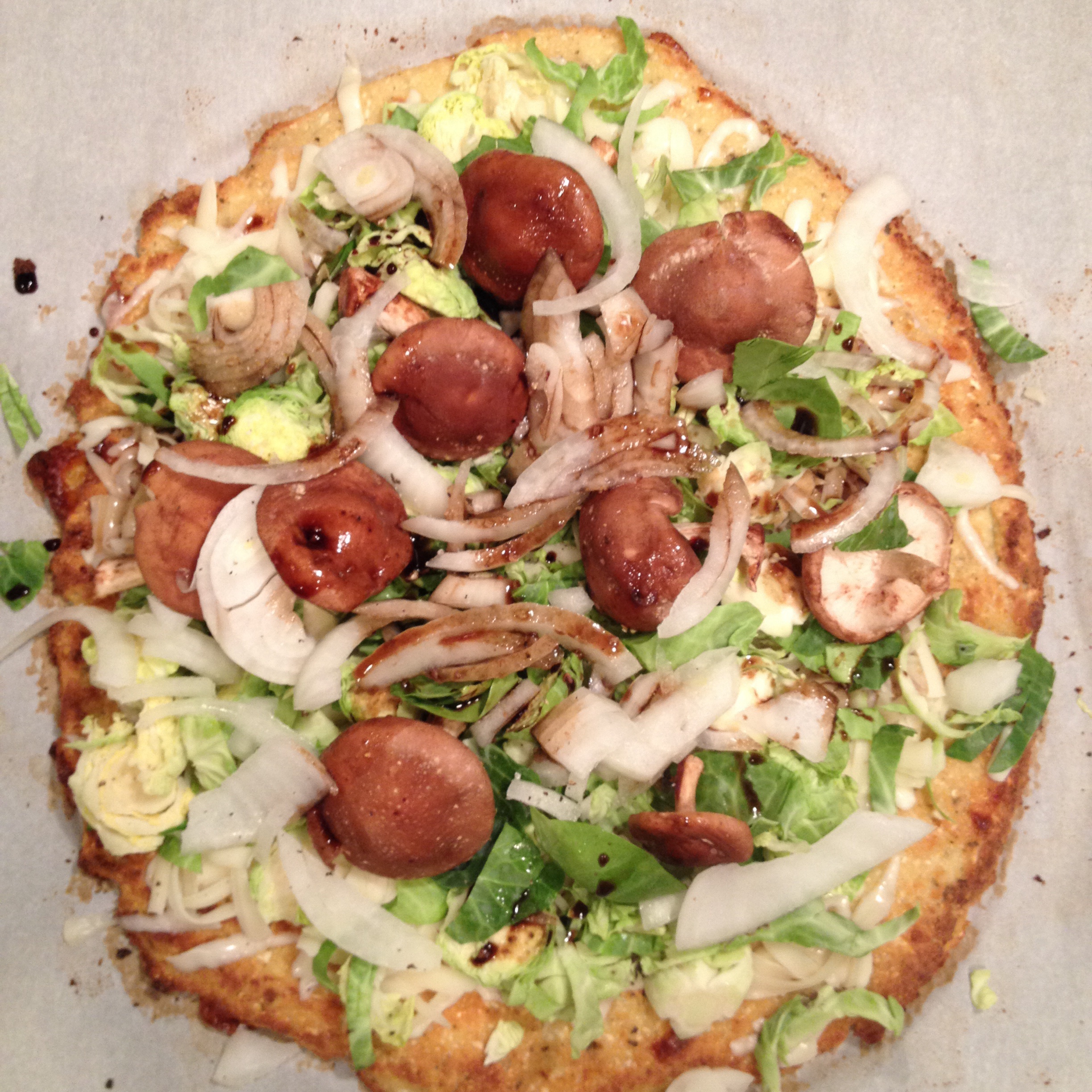 Shaved Brussel Sprout Mushroom Pizza with Cauliflower Crust