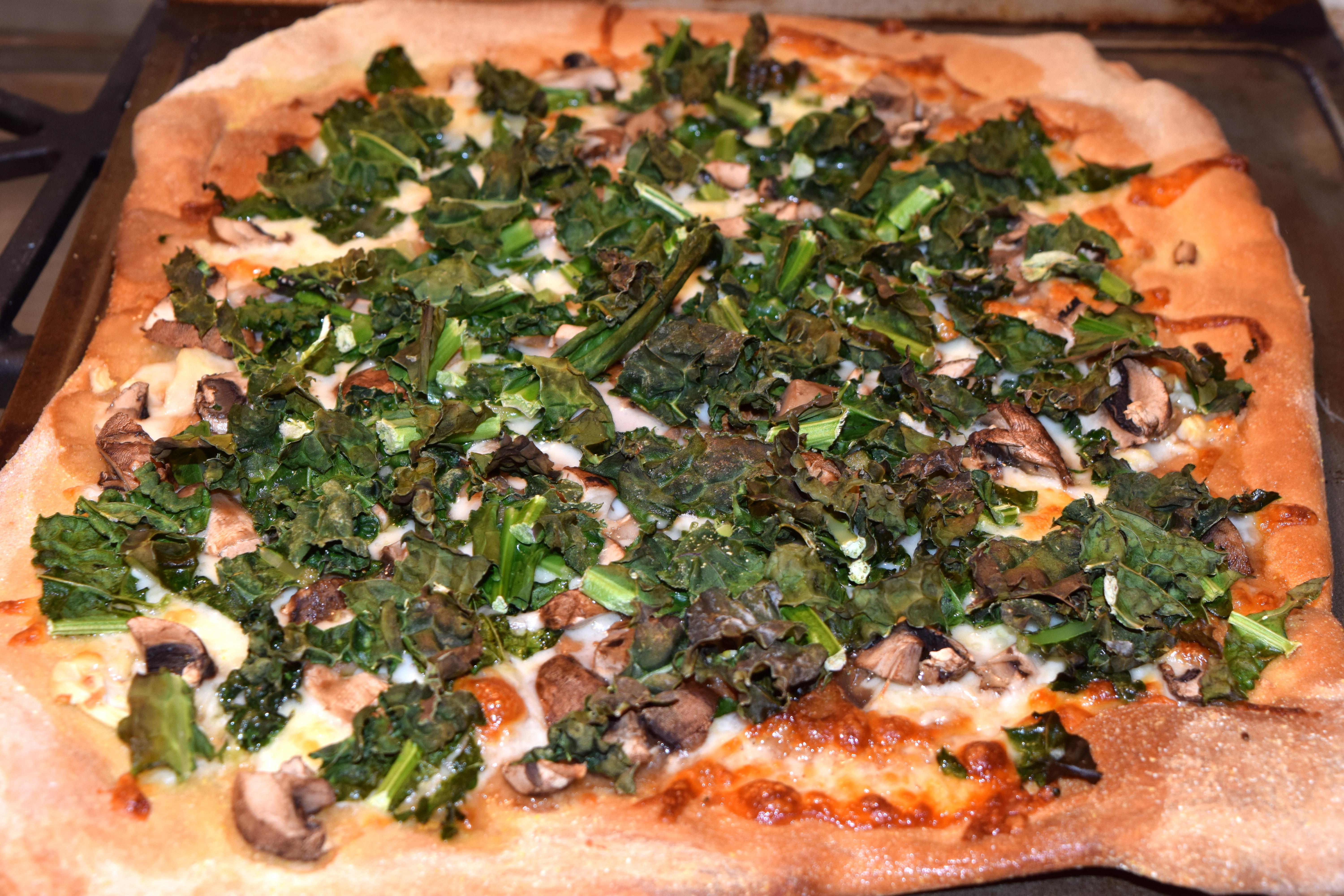 5. Sprinkle mozzarella evenly over dough and top with kale.
